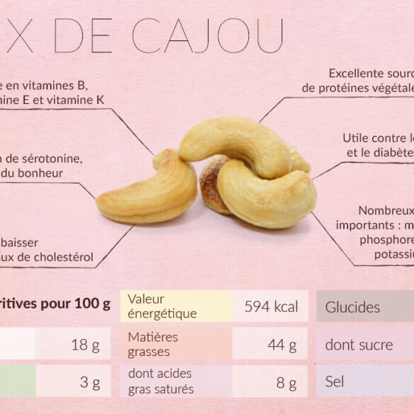 Le magnésium contenu dans les noix de cajou est essentiel pour réguler le métabolisme des graisses et des glucides, ce...
